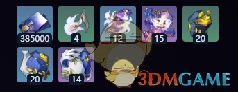 3拥有385000信用点,还持有4个云际音符、12个空际小节、15份天外乐章,另外有20个恐惧踏碎血肉、20个勇气撕裂胸膛以及14个荣耀洗礼身躯。