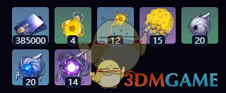 385000个信用点、4份思量的种、12株末那芽苗、15朵阿赖耶华、20颗熄灭原核、20颗微光原核、14颗蠢动原核