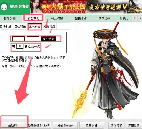 2、接下来,下载一款艺人挂机工具。下载完成后,打开该工具,在其中选择【钓鱼艺人 - 艺人御兽】。
