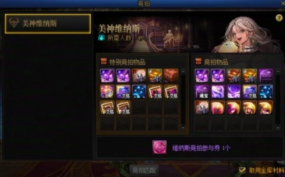 3、维纳斯的常规拍卖会,有一定概率出现可交易1次的消耗品【天帷巨兽的眼泪(10个)】 。
