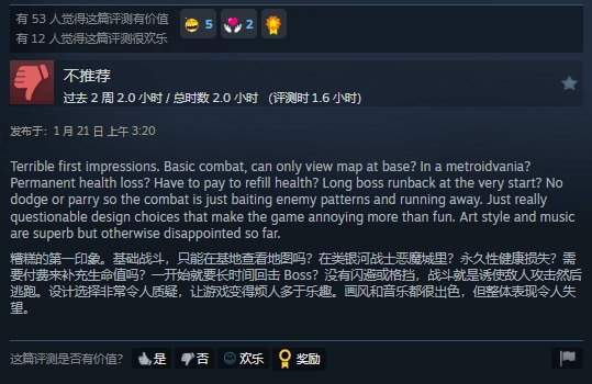 很多玩家对这款游戏给出了不错的评价,不过它的入门门槛相对较高,刚接触的时候会让人觉得有些难熬。