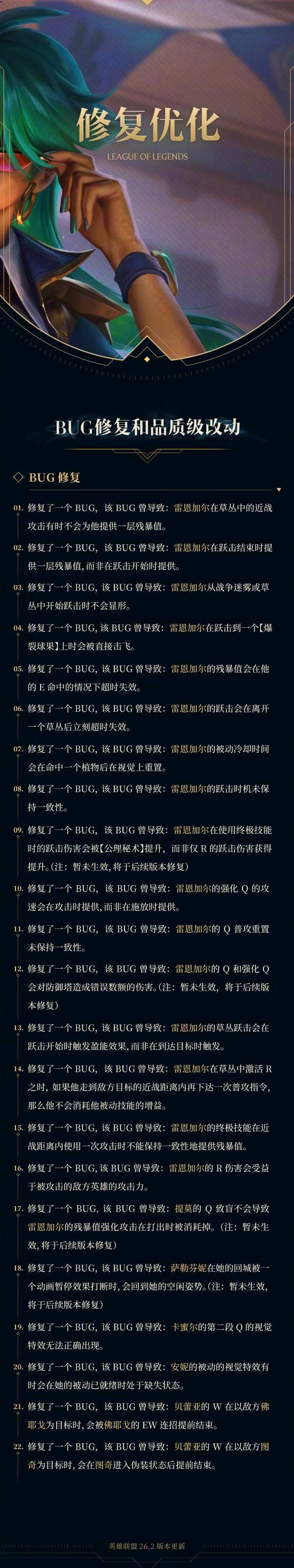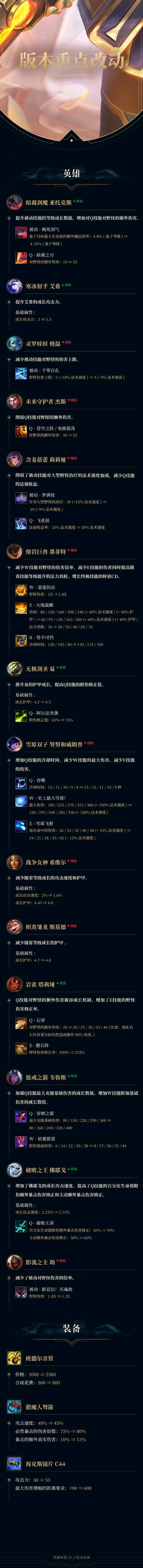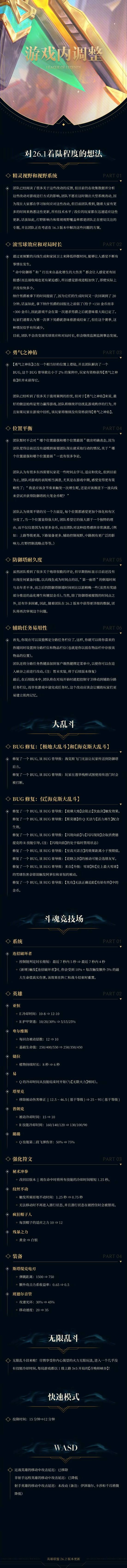 5. 对英雄、装备、符文、海克斯大乱斗以及斗魂竞技场进行平衡性调整;