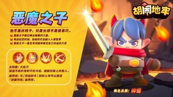 关键作用:和「恶魔之子」配合能触发「地面燃烧」连携技,这是游戏前期最容易成型的强势输出组合,二者搭配可以覆盖“直线 + 地面”的双重范围伤害。