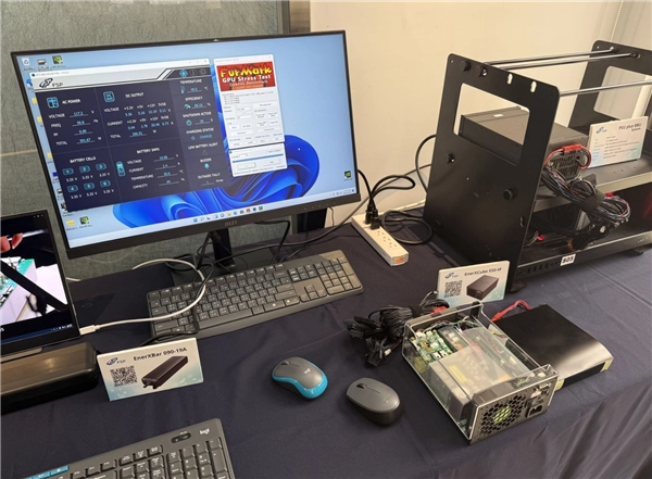 更有意思的新品是一款自带电池的UPS电源,即便遭遇意外断电,也能继续维持PC运行。FSP展示的nerXBar 090—19 A电源就具备这样的特性,它内置48Wh电池备份单元,断电后仍可支持设备运行28分钟。