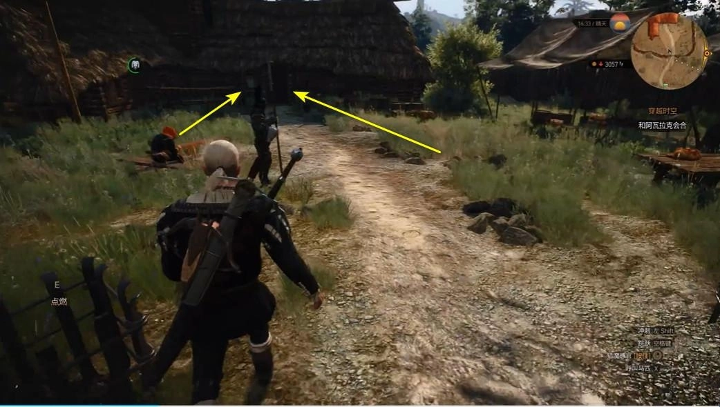 3、进入后,朝着小屋的门走去,然后进入屋内;