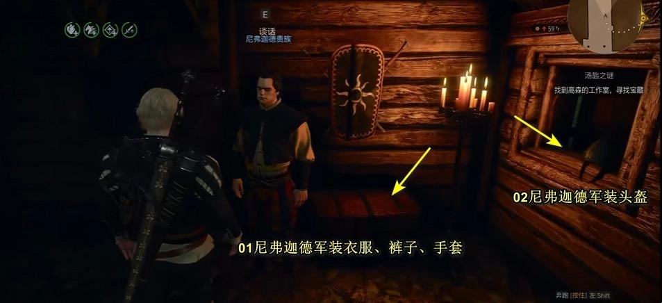 5、在角落的宝箱中,能找到尼弗迦德的盔甲与裤子,而窗户旁边则可寻得【尼弗迦德守卫头盔】;