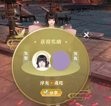 3、挑选你想染色的发型并穿戴好,穿戴完成后,打开盲盒就能免费获得浮光发色。