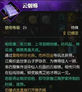 在【锦衣阁 - 时装挂饰商店】,花费98个【云烟锦】就能完成兑换。