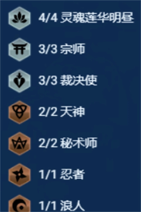 4明昼、3宗师、4裁决使、2天神、2秘术师、1忍者、1浪人