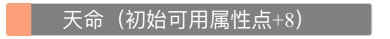 效果:初始时可使用的属性点增加8个
