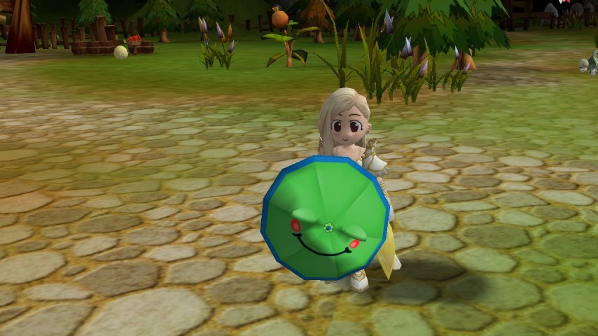 雨伞自然也是不可或缺的。这把青蛙伞可是最近在《希望OL》里火起来的时尚好物。小青蛙那双忽闪忽闪的大眼睛,把“萌”的精髓展现得淋漓尽致,超大的伞面能让冒险者们在雨天也能穿着心爱的大裙子出门,既气质十足又不失可爱。
