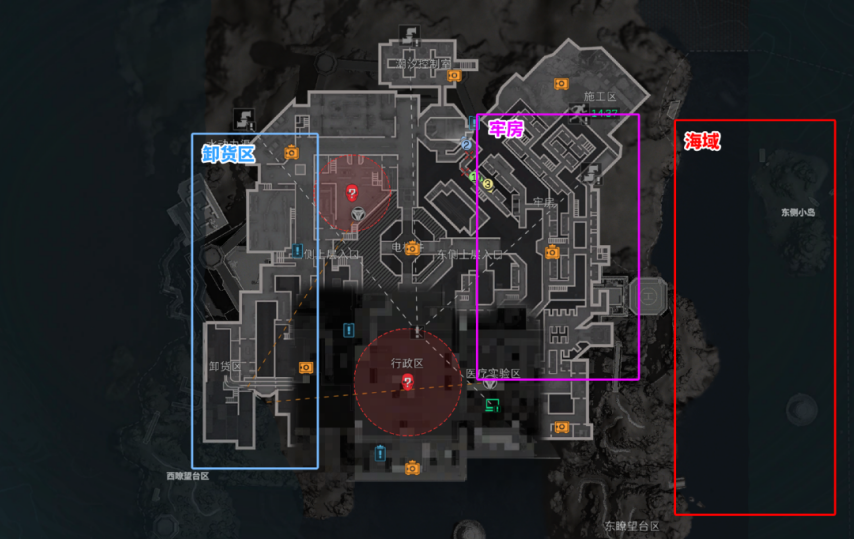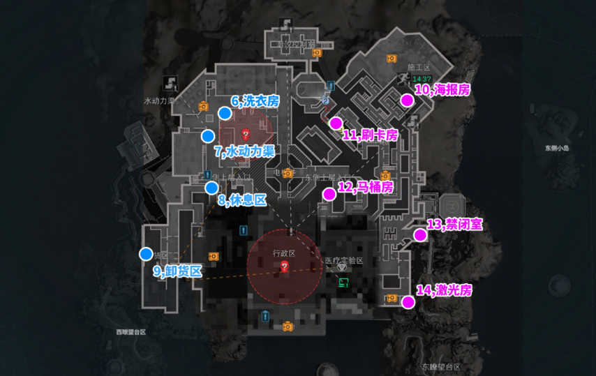 (6)牢区(海报房,刷卡房,马桶房)复活优先确认牢区有没有第二队人,没人爽吃,有人看完重要物资转点去潮汐控制室,或是通过施工区前往海域。