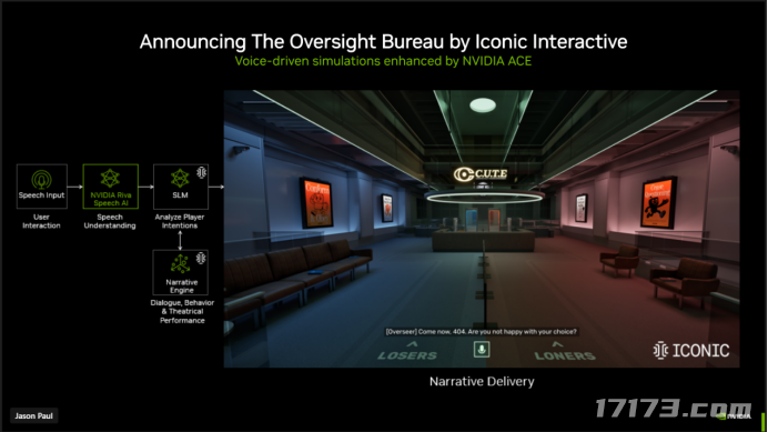 比如解密新作《The Oversight Bureau》就借助NVIDIA ACE技术,给玩家们画了一张类似于《头号玩家》概念的大饼。