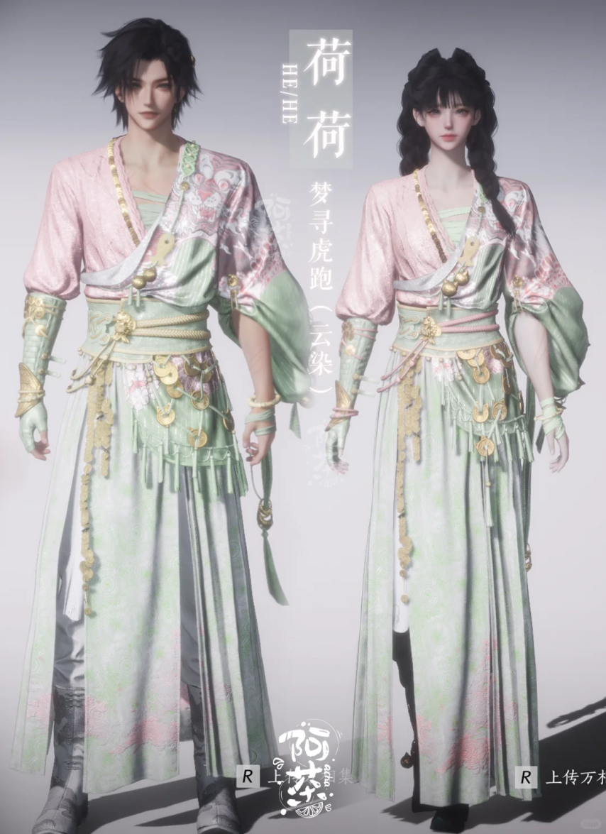 第二位@茶茶丶(纯玩版),其男号万象集ID为君似踏雪归,女号万象集ID是茶茶柚丶