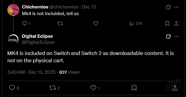如果你在上周入手了Switch或Switch 2平台《真人快打:遗产合集》的实体版本,这里有一则或许会让你不太开心的消息。