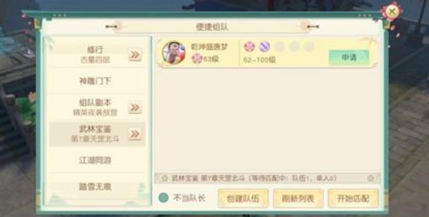 武林宝鉴里敌方摆出的阵容偶尔是伤害加封印的组合,或者是高伤害配治疗的搭配,有些章节甚至这几种类型都包含在内。所以在挑战武林宝鉴之前,最好找一些能和敌方阵容形成合适搭配的门派技能,然后组队开黑。这样打宝鉴就会轻松不少。