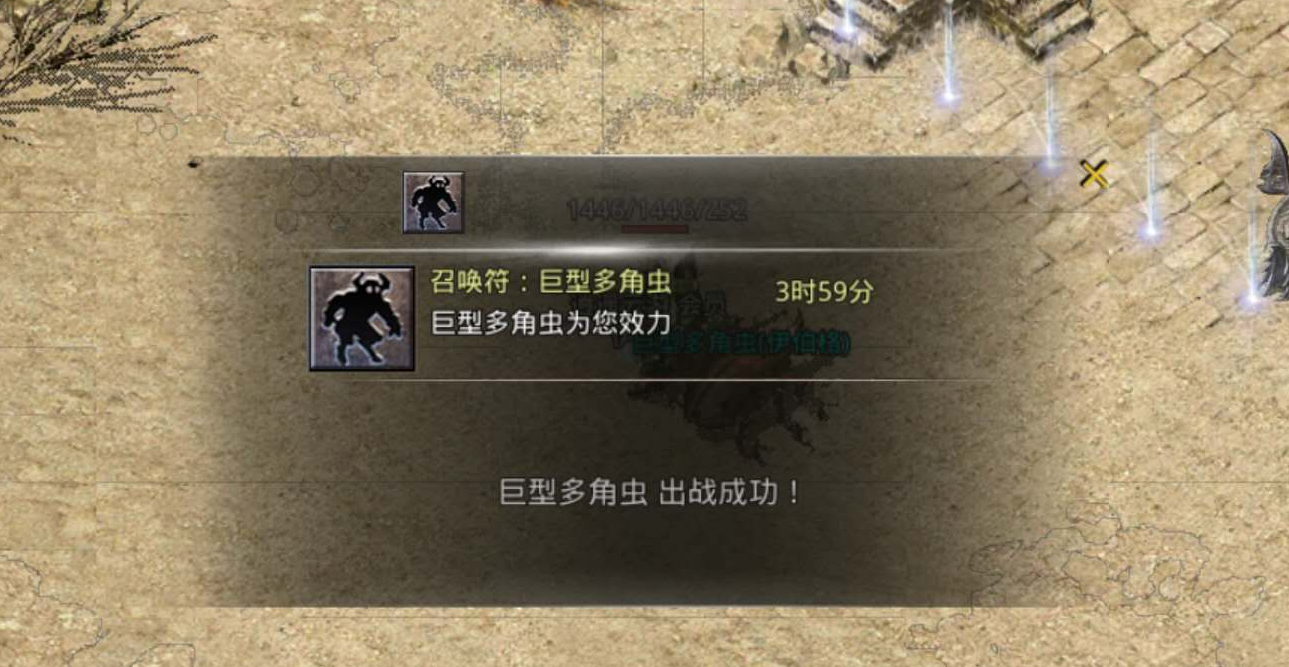 不过召唤符是消耗类道具,用它召唤出来的生物没法像道士的召唤物那样一直存在——每张召唤符的有效时长是4小时,且只算角色在线的时间,下线期间不计入;另外召唤物死亡后,得等60秒才能重新召唤。和道士的召唤物还有点不同:召唤符召出来的生物只能对怪物发起攻击,不能攻击玩家,而且在沙巴克战斗进行时,召唤符是无法使用的。