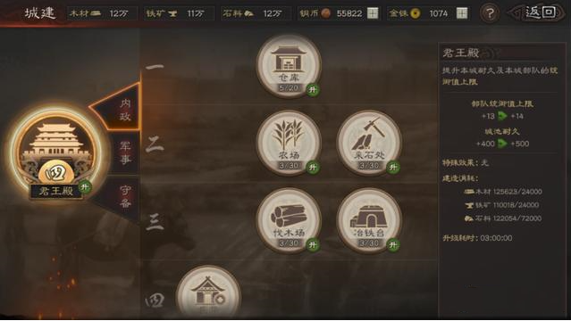 升级君王殿需要大量的石料物资,尤其是7级君王殿,所需石料达到了28.8万。