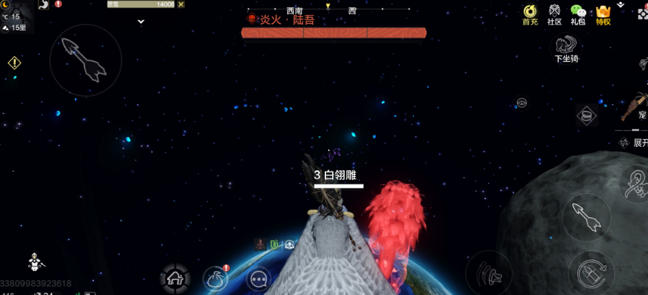 3、飞行过程中火箭可能会突然消失,具体原因不太明确,或许是燃料不足,也可能是其他因素。这时候大家需要召唤飞行宠物,然后朝着蓝色星球相对集中的区域飞去就可以了。