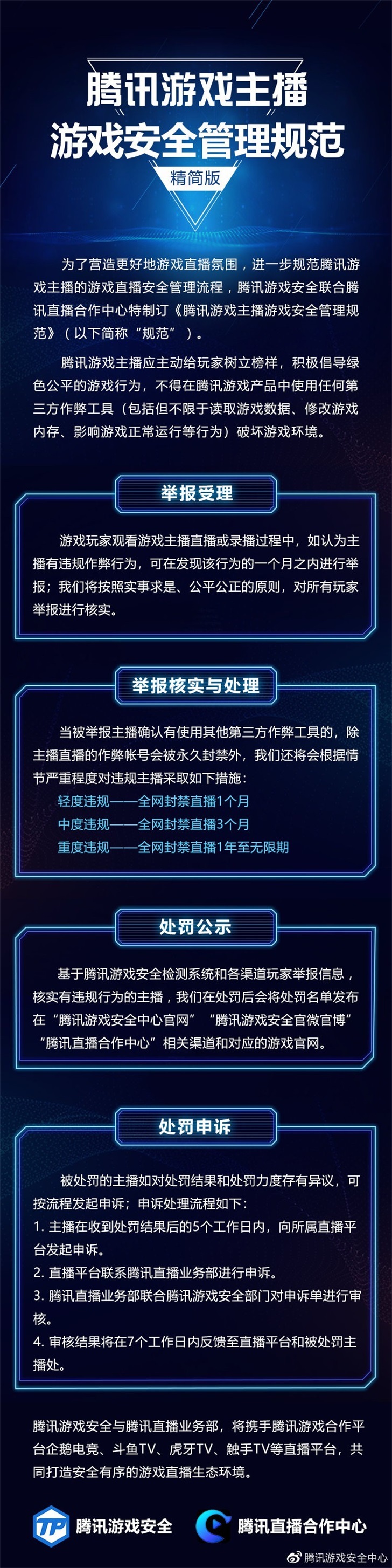 为了打造更优质的游戏直播生态,进一步优化腾讯游戏主播的管理工作流程,腾讯游戏安全与腾讯直播合作中心联合制定了《腾讯游戏主播游戏安全管理规范》(以下简称“本规范”)。