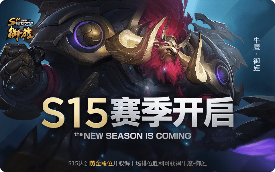 在S15赛季中,只要达到黄金段位且完成10场排位赛胜利,就能获得该赛季的专属皮肤——牛魔-御旌。