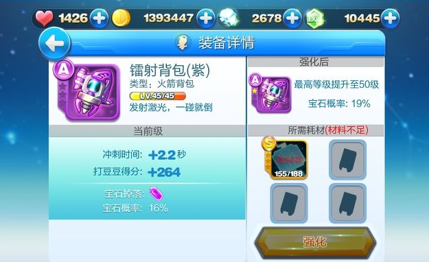 在芯片的选择上,我比较推荐“重力芯片”和“火箭芯片”——前者能帮助我们快速降落,后者则助力快速升空,这两款芯片对于后期灵活躲避路障都很有帮助;背包方面,“镭射背包”与“羊羊背包”是我的推荐,它们在所有背包里炫力值最高,能在游戏中带来更出色的加分效果;至于UFO,建议选择“鹰眼UFO”或“雷神UFO”,前者有概率使导弹坠落,后者能让雷管有概率爆裂,二者都能提升我们的容错率,增强短跑后期的生存能力。