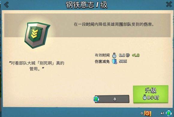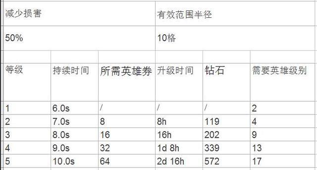 技能介绍:在一段时间内降低英雄周围部队收到的伤害