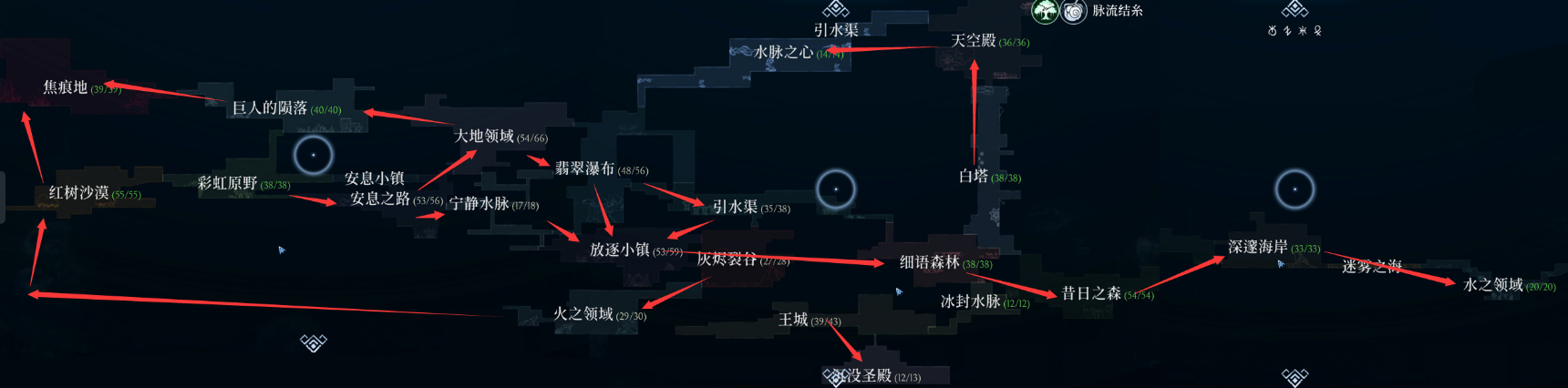 在游戏里,探索方向和地图的选择都能依据玩家的喜好来决定。不过结合玩家前期的实力状况以及剧情的推进节奏,我还是给大家整理了一份地图探索的建议顺序,具体如图所示。
