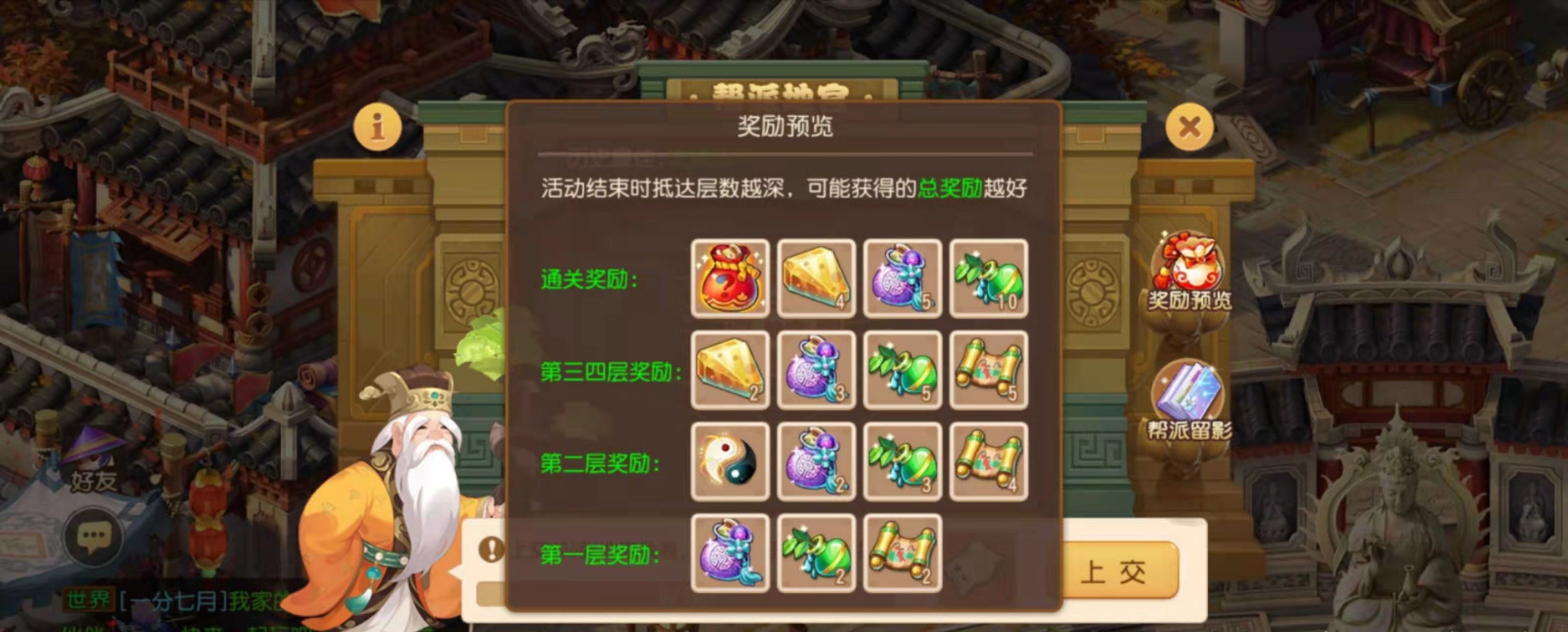 帮派迷宫设有四层关卡,每一层都需要帮派成员协作完成对应的任务。参与迷宫玩法可获得大量帮贡,每场战斗不仅有机会掉落魔兽要诀等稀有道具,还有概率得到地宫专属道具“骰子”。迷宫活动结束后,系统会依据少侠们的闯关表现和骰子最终掷出的点数,发放一次丰厚奖励,其中最高奖励包括高级魔兽要诀、金刚石、定魂珠等。第四层的首领属于团队挑战型怪物,将根据玩家的输出排名额外发放排行奖励。