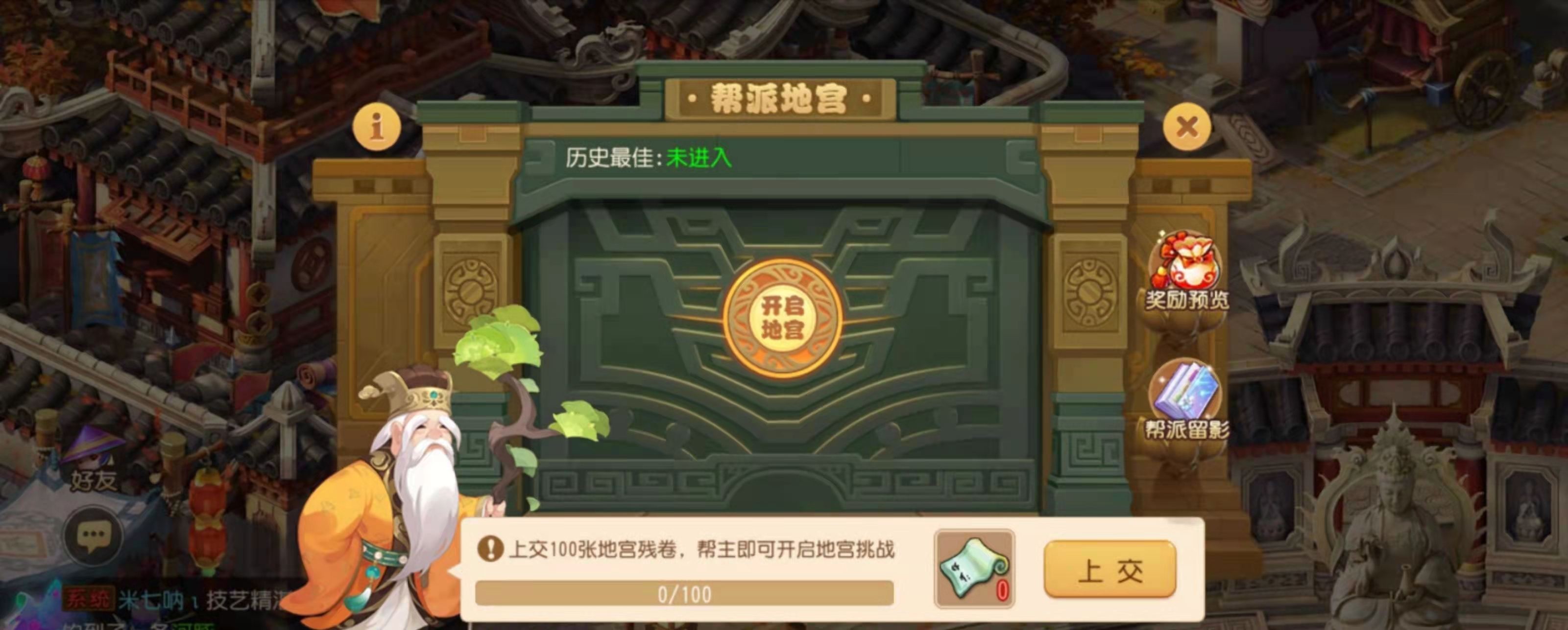 玩家在完成帮派任务和低级藏宝图任务时,有机会获取地宫残卷,并且可以将其上交至所属帮派。一旦帮派累积的地宫残卷数量达到100张,帮主便具备开启迷宫的权限。