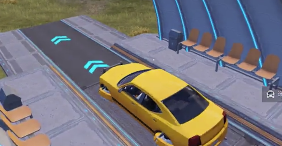 这个模式和哥斯拉模式有几分相似,图上的标记点数量不少。我们逐一展开解析,首先是最常见的矩阵租车功能,能看到一辆轿车,点击后就能驾驶;接着可以自主选择站点,选定后就能启动飞行模式,车辆会自动行驶到对应站点,沿途还能欣赏到一连串的风景。