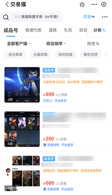 可以参考同行账号的定价情况。进入LOL游戏专区后,买家可以找到各种品质的账号。全英雄账号比较稀有,但其价格并不贵,通常只需几百元。不久前,就有一位买家以四百五十元的价格,购入了一个拥有全英雄和多款皮肤的账号。除此之外,专区内还有国服账号、高段位账号、传说皮肤账号、退坑账号等多种类型可供选择。