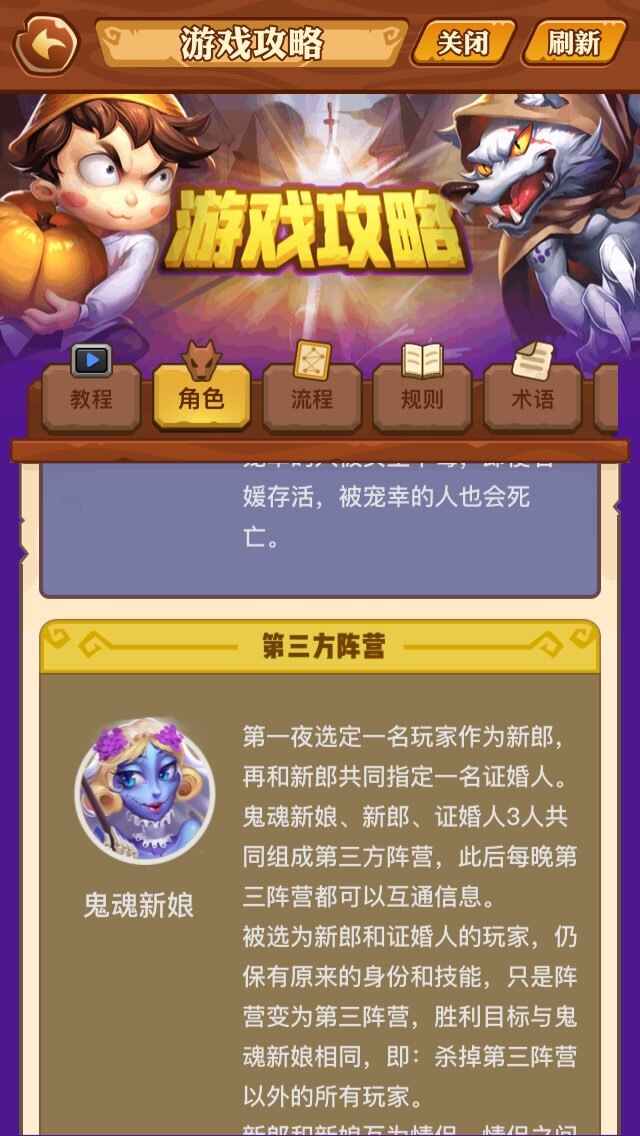 (2)被选定为新郎与证婚人的玩家,其原本的身份和技能保持不变,不过阵营会转变为第三阵营,胜利条件和鬼魂新娘一致。