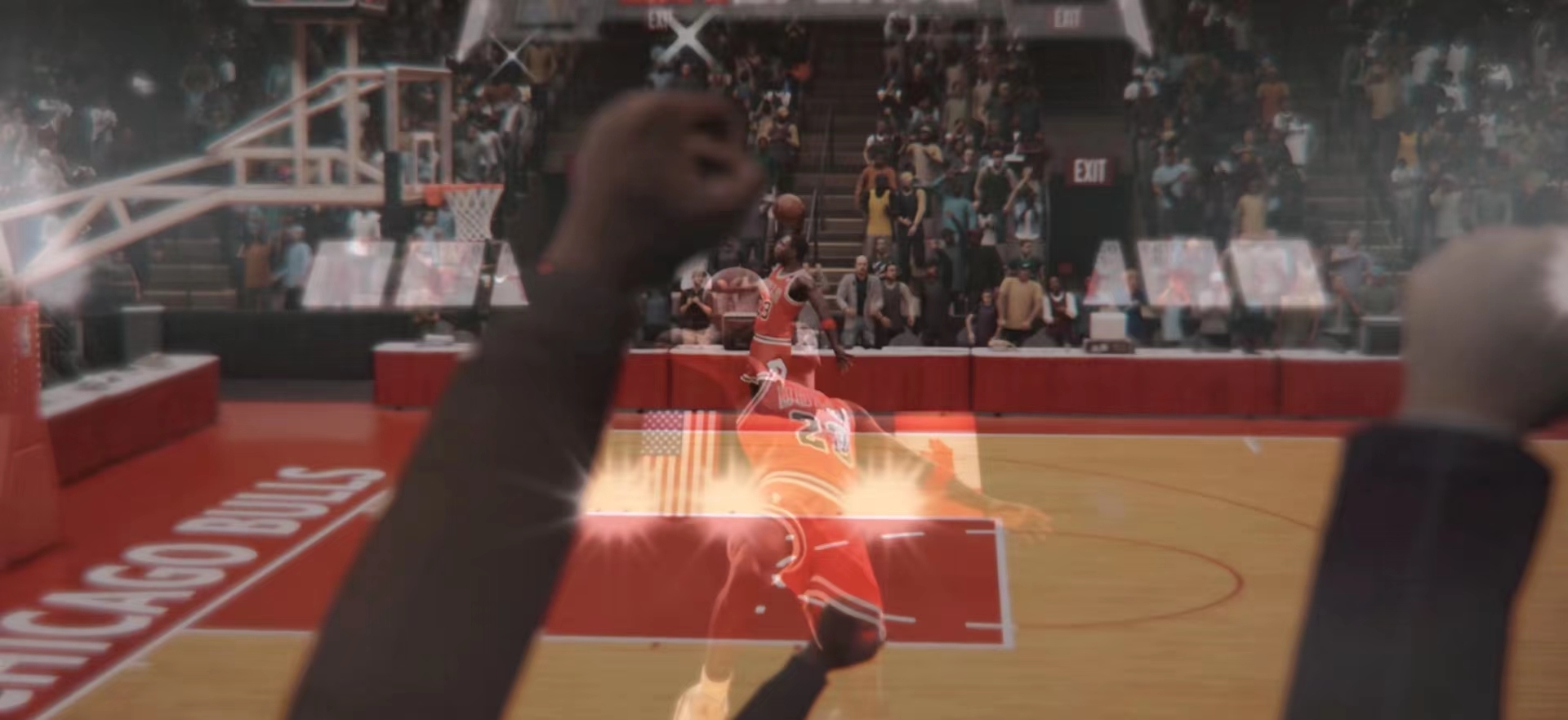 4.下-吊框,吊框是个相当酷炫的动作,玩家只需长按向下键,就能一直挂在篮筐上。游戏在这一机制里还加入了超拟真的物理引擎,玩家能操控角色保持平衡,借助篮筐完成引体向上的动作,这应该是不少玩家都抗拒不了的操作。