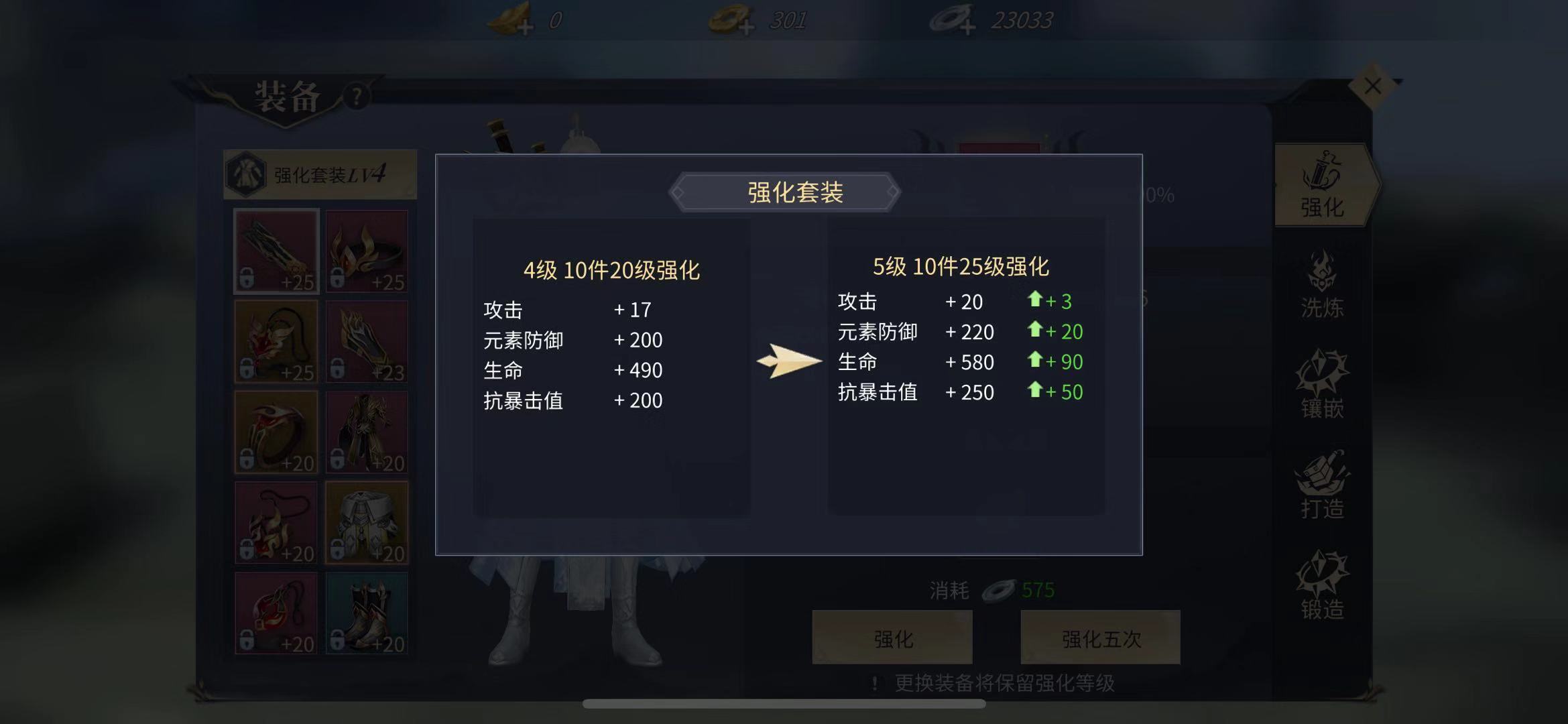 装备强化并非单件等级越高就越理想,因为它存在套装效果机制——当十件装备的强化等级均达到整五级时,就能触发装备套装效果,其带来的斗气加成会远超单件装备升级的收益。因此,新手玩家切忌只专注提升单件装备,要知道,一件强化二十级的装备,实际效果是比不上十件都强化到五级的装备的。