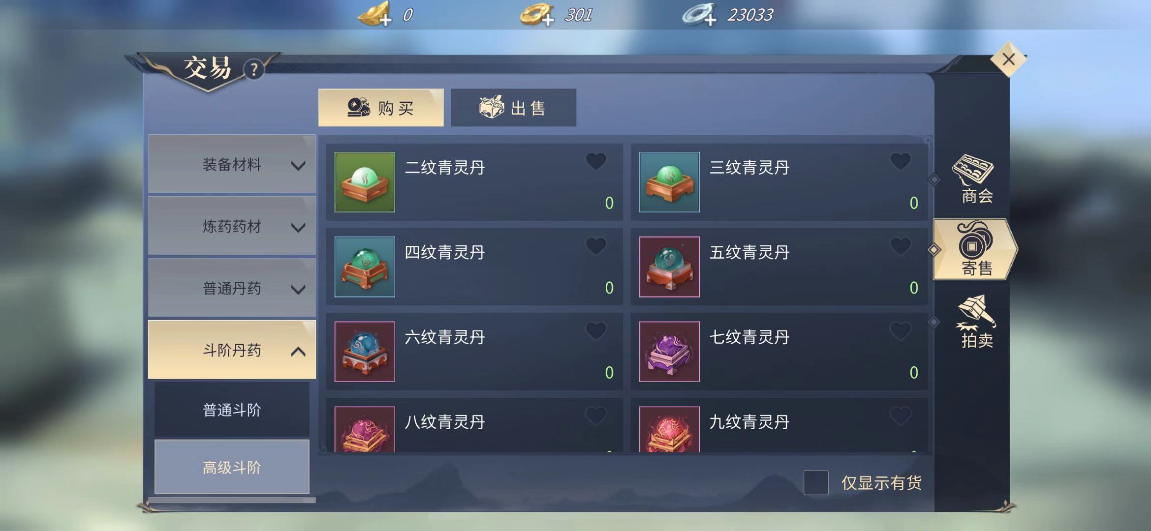 若玩家所在服务器为新服,其包裹内将自动拥有新手礼包。当玩家等级提升至特定阶段时,即可开启该礼包,礼包中包含青灵丹道具;若玩家处于非新服,则可点击交易按钮,进入寄售界面,在左侧分类栏选择斗阶分类,找到青灵丹后使用金币购买即可获取。