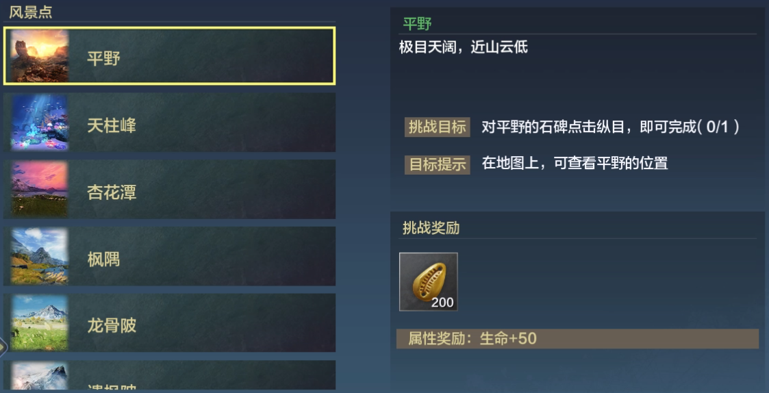 第3点是通过解锁《山海经》相关内容来提升各类属性,例如跑图解锁风景点可以增加血量;解锁特色美食与草木能够提升韧性值,还有不少其他类似的解锁项,这里就不一一列举了。