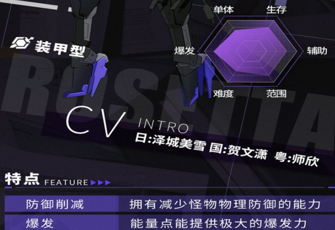罗塞塔是SSR级角色,型号为凛冽。她不仅外形靓丽,还具备高额物理伤害,能削减怪物防御,爆发能力强劲,可瞬间秒杀敌方脆皮,同时拥有大范围聚怪效果,在团队作战中作用显著。此外,她的减伤效果也十分出色,这让她能轻松成为一名无往不利的优秀战士。