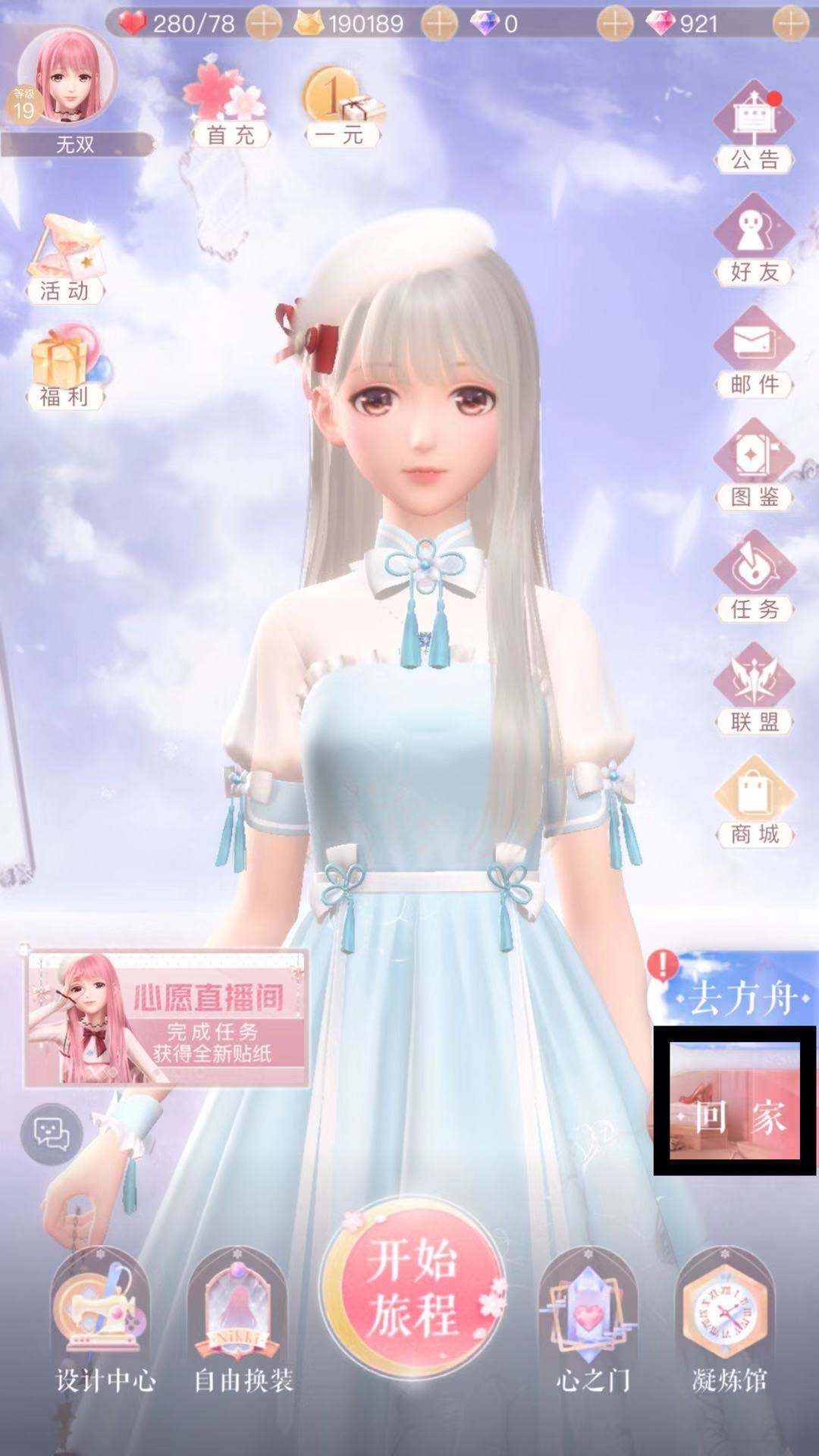 1、游戏主页面有一个回家,点击进去之后我们就可以进入到暖暖的家了。