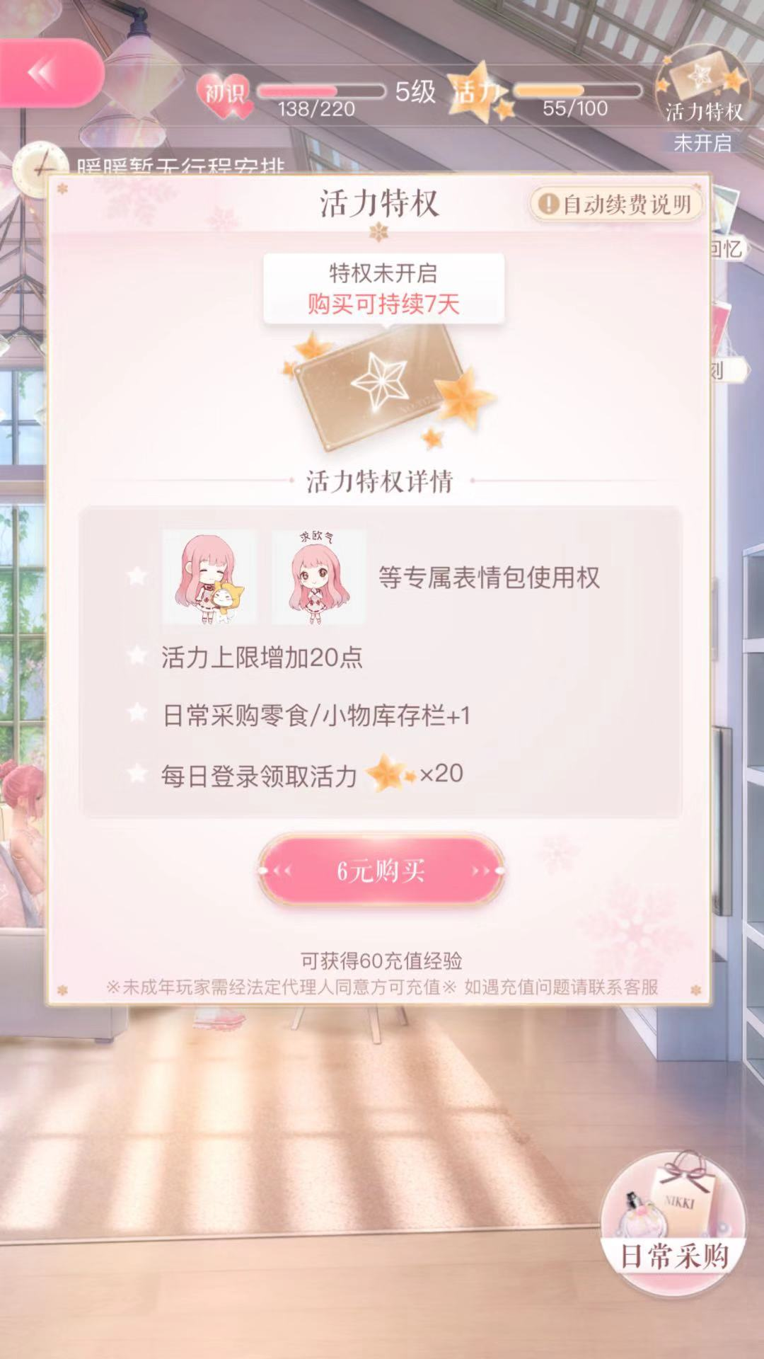 7、当然,如果是愿意充值的玩家,可以考虑用粉钻购买零食,也可以花6元购买特权卡。
