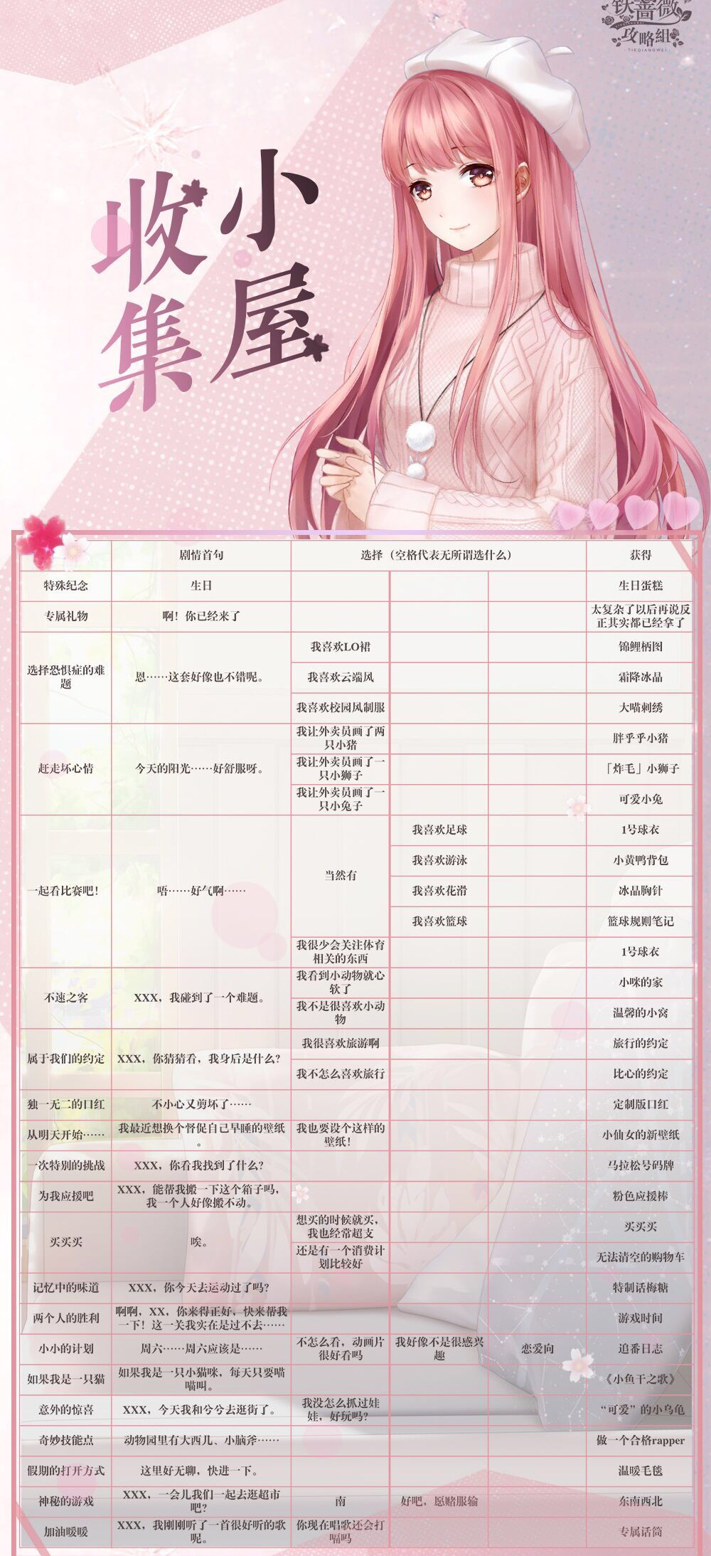 3、关于专属回忆的获取规则是这样的:需要和暖暖进行对话,并且答对问题才能得到。不过这个对话是随机触发的,要是没及时点击对话,它还有可能消失。另外要注意,不选择对话肯定得不到专属回忆,选了也不一定能获得,但大部分情况下是可以拿到的,总体而言还是看运气。接下来小编会把触发对话后的正确答案放在下图里,这是一份非常详细的对话答题参考图。