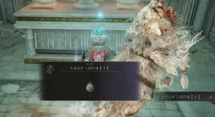 还有个获取大量失色锻造石9的办法:先到大桥侧边的赐福点,往东走坐升降梯下去,出来后右手边进去往左走,找到一具尸体,从上面拾取失色石矿工的铃珠5。拿到这个铃珠,就能在圆桌议会的老妪那里购买失色锻造石9了。