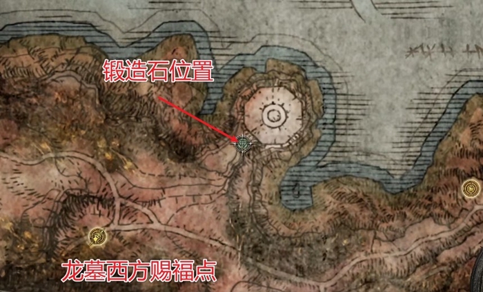 我们先前往龙墓西方的赐福点,失色锻造石的第一处获取位置就在该赐福点的东北方向。前往标记点的途中会遇到一只怪物,将其击杀后可获得8级失色锻造石。抵达标记点后,直接跳到旁边的树枝上,再慢慢向下跳跃,平稳落地后就能看到9级失色锻造石,直接拾取即可。第二处获取位置则在法姆大桥赐福点的西侧,那里有一只大家常说的宝石结晶虫,击杀它就能得到另一颗9级失色锻造石。