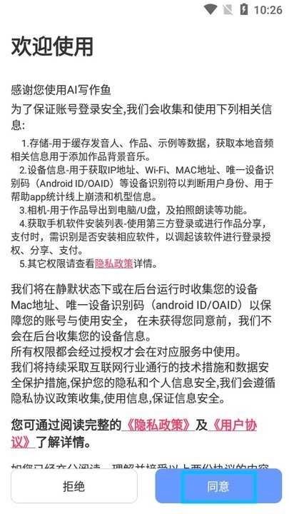 1、打开软件,阅读弹出的内容,点击【同意】。