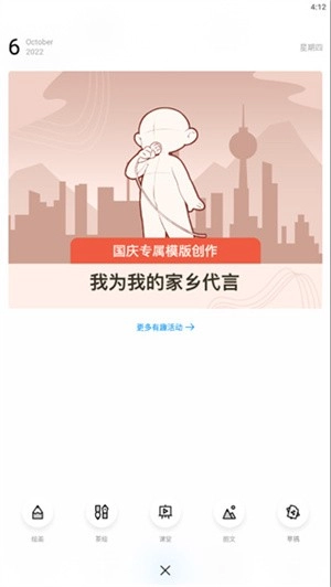 2、点击中间的蓝色小画笔即可创建绘画模板;