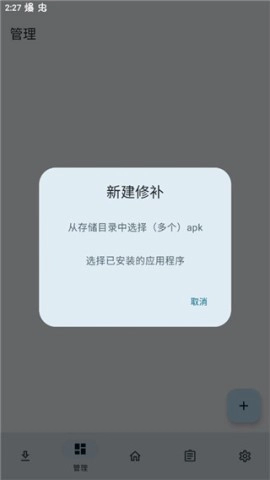 1. 开启软件后,进入管理功能页面,点击右下角的“+”号。