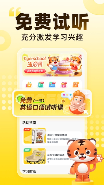 Tigerschool英语是一款专注于儿童英语教育的软件。要是你不想让孩子因英语而输在起跑线上,不妨试试这款英语教学软件。软件里包含大量有趣内容,能让孩子在学习时不觉得枯燥,还能更好地吸收知识。其内容不仅精彩,而且十分丰富,能同时满足孩子对快乐和学习的需求。