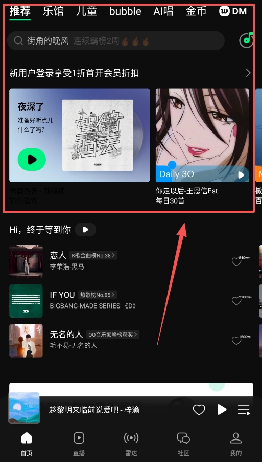 常用功能包含保留电台、每日推荐、排行榜、歌曲分类等专区,能让你快速找到更多喜爱的音乐资源,满足多听歌的需求。