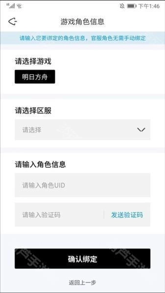 3、挑选对应的游戏和区服,接着填写角色信息与验证码,之后点击确认绑定就完成了