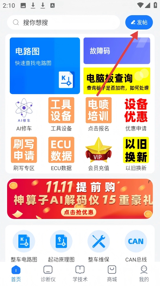 进入软件,点击【发帖】按钮,触发后续流程。